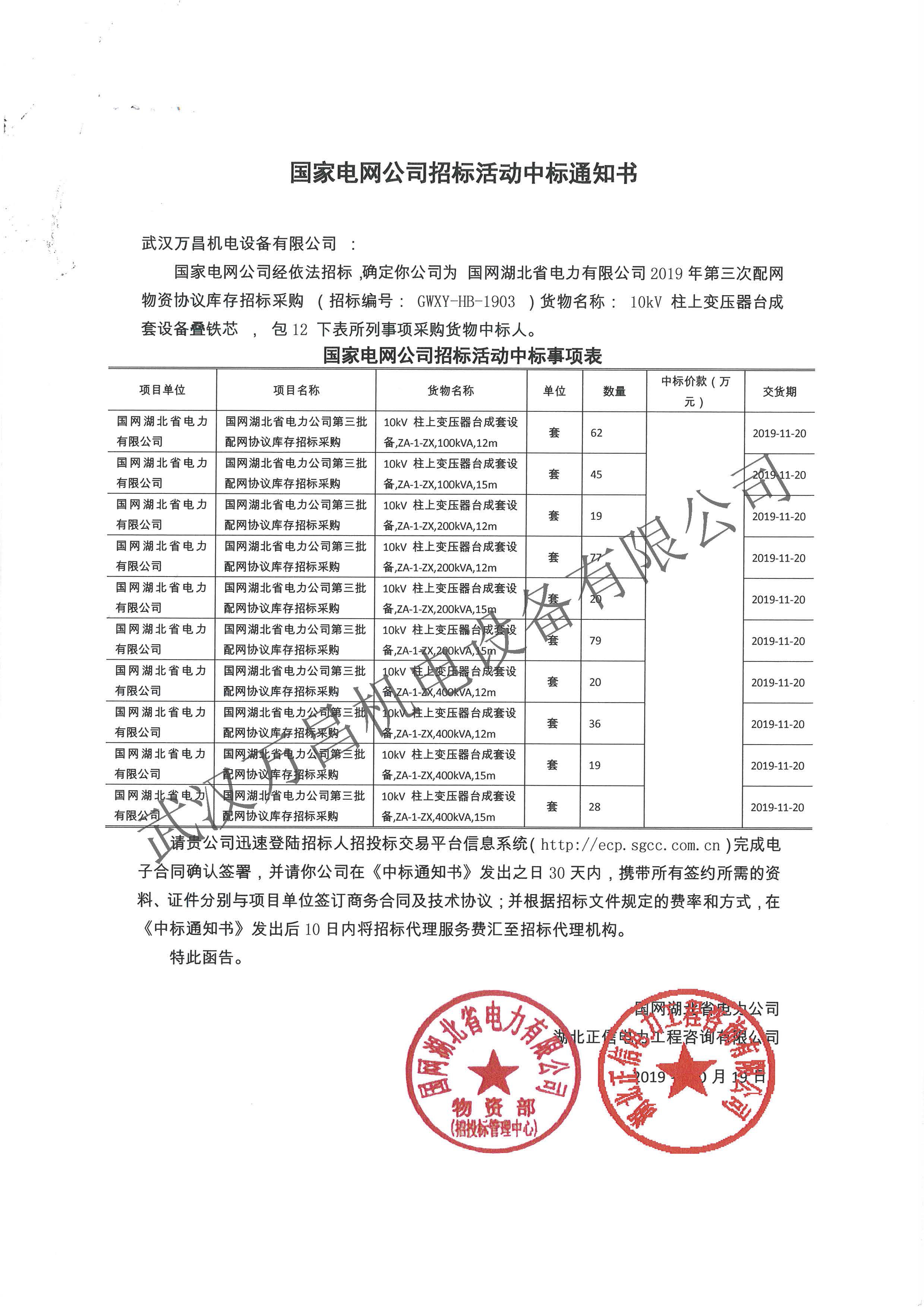 2019年中標(biāo)國網(wǎng)湖北省協(xié)議庫存項(xiàng)目